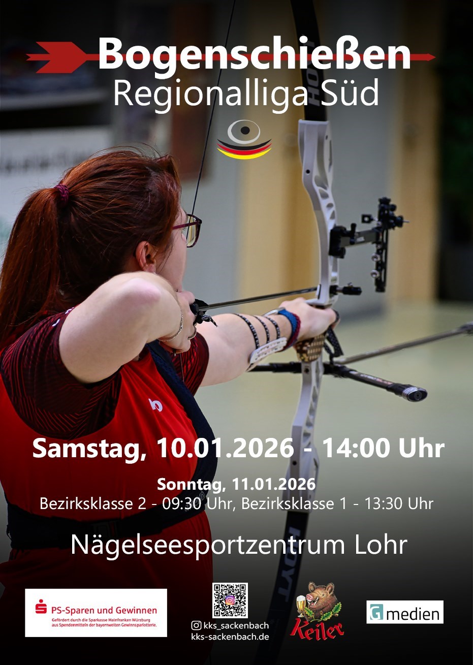 Für die Bogenelite Bayerns steigt das Saisonfinale am 09.Februar im Lohrer Nägelseesportzentrum. Zum zweiten Mal holt der Schützenverein Sackenbach einen der vier Wettkampftage der Regionalliga Bogen Süd nach Lohr. In dieser Saison geht es für das Team des KKS um die Treppchenplätze.