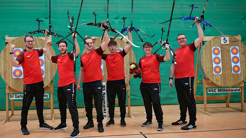 Im folgenden Wettstreit gegen die Bogenschützen aus dem oberpfälzischen Neumarkt mussten im ersten Satz mit 53:54 Ringen die ersten Satzpunkte des Tages abgegeben werden, was aber den Sieg der KKS nur verzögerte. Das Team ließ sich davon nicht aus der Ruhe bringen und behauptete sich in den folgenden drei Sätzen souverän mit 6:2.