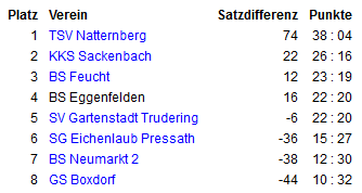 Die Mannschaft, welche nach je 6 Pfeilen mehr Ringe geschossen hat erhält 2 Satzpunkte.