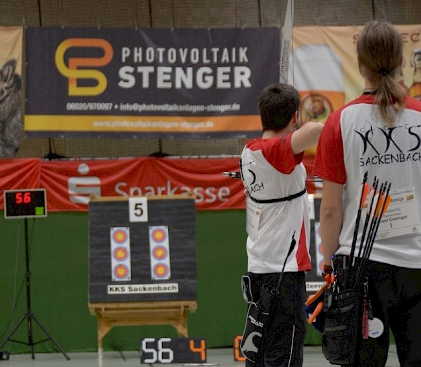 Die erste Mannschaft des KKS-Sackenbach erarbeitete sich über die laufende Saison eine solide Tabellenposition. Zur Saisonhälfte konnten die KKS-Bogenschützen den zweiten Tabellenplatz erkämpfen und diesen auch am dritten Schießtag verteidigen, welcher Anfang Januar im oberpfälzischen Pressath (nahe Weiden) stattfand. Dort verbuchte das Sackenbacher Team mit drei Siegen und einem Unentschieden sieben Punkte für die Tabelle. Ein Blick auf die aktuellen Punktestände verrät, dass die Schützen des TSV Natternberg ihren Anspruch zum Aufstieg in die zweite Bundesliga mit nur noch einem Siegmatch sicher in der Tasche haben. Nach den bis dato 21 geschossenen Matches, verlor Natternberg nur zwei Begegnungen und diese beide Male gegen den kommenden Gastgeber vom KKS Sackenbach.
