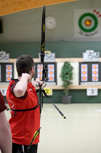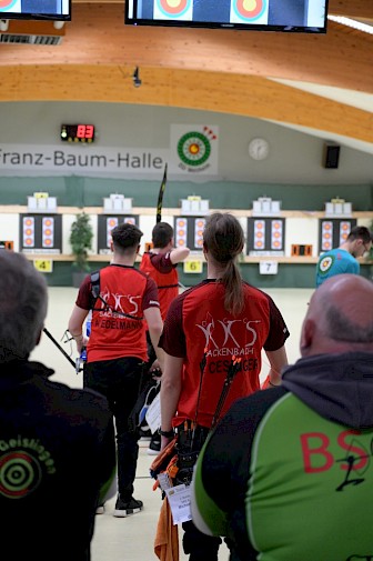 In der ersten wichtigen Begegnung des Tages gegen die direkten Verfolger aus Ditzingen, gaben sich die beiden Teams in den ersten vier Sätzen keine Blöße und so musste der fünften Satz über Sieg oder Niederlage entscheiden. Mit einer sehr starken 58er Passe (von max. 60) entschied diesen jedoch die Schwaben für sich. In den drei darauffolgenden Begegnungen gegen Geislingen, Welzheim und Büschfeld, fanden die Pfeile des KKS nicht oft genug den Weg in die goldene Mitte. Kein Teammitglied wurde seiner Leistungen der vorangegangen Wettkampftage gerecht und so mussten alle Begegnungen bis zur Pause ohne Punktgewinn abgegeben werden. Der Vorsprung war somit dahin und einen Tabellenplatz nach unten gerutscht, dicht gefolgt von Büschfeld und Welzheim, die beide an diesem Tag bis dahin einen guten Lauf hatten, jedoch direkt nach der Pause aufeinandertreffen sollten.