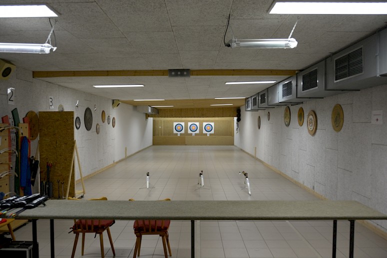Unser 18 Meter Schießstand für Pfeil und Bogen bietet Platz für 6-7 Schützen gleichzeitig. Zudem verfügt er über eine Ampelanlage zum Wettkampftraining. Für Großveranstaltungen (Hubertustag oder Geburtstage u.ä.) wird der Schießraum ganz schnell zum Gastraum für bis zu 60 Personen oder zur Dartarena umgebaut.